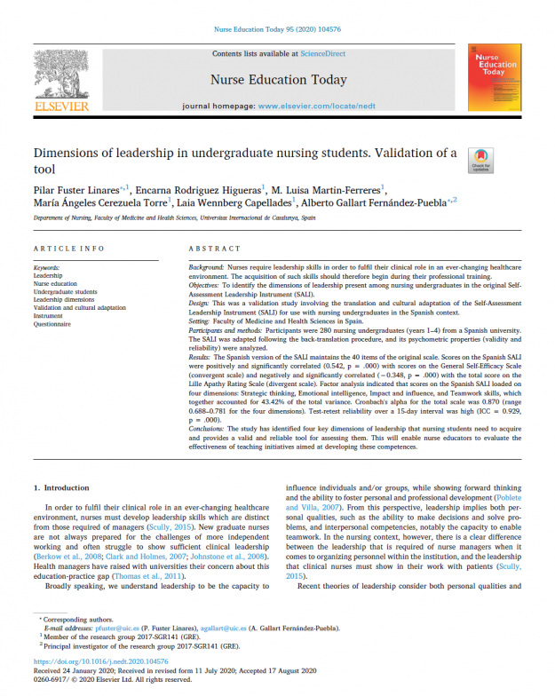 Dimensiones del liderazgo en alumnos del Grado en Enfermería. Validación de un instrumento (Es-SALI)